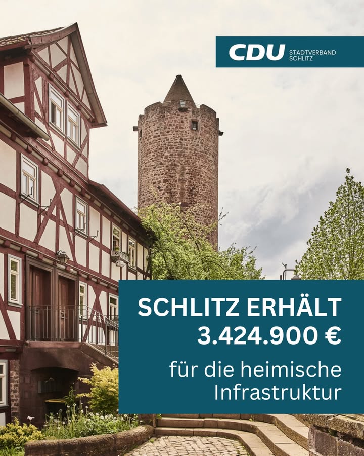 👉 Die CDU Schlitz freut sich sehr über diese Zuwendung und möchte die Mittel gezielt in die heimische Infrastruktur investieren, unter anderem für: